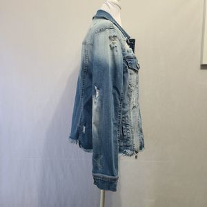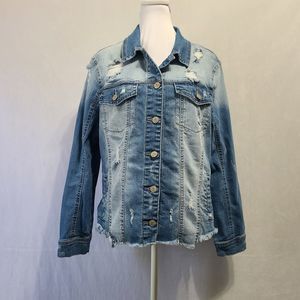 Enjean Denim Jean Jacket Distressed Women's Size Large Blue