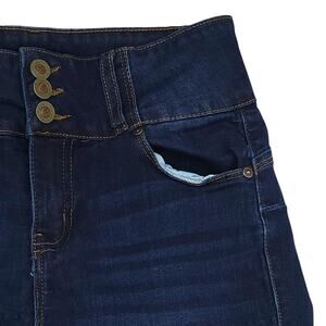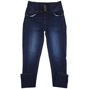 Enjean Jeans Womens 5 Blue Skinny Ankle Mid Rise 3-Button Wide Waist Denim
