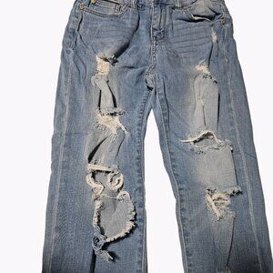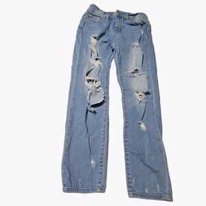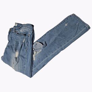 Enjean Jeans Womens Size 3 Straight Leg Mid Rise Light Wash Ripped Denim Pants