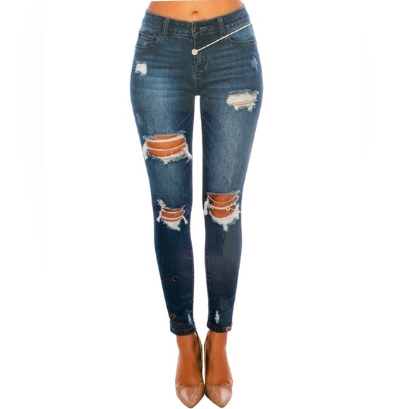Enjean Midrise Ankle Length Destroyed Distressed Skinny Fit Jeans Size 13