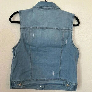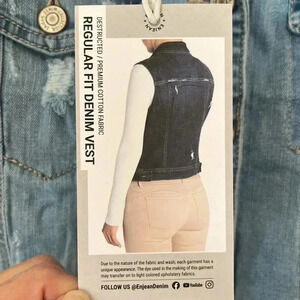 Enjean woman’s distressed vest, light wash stretch denim, 4 pockets NWT
