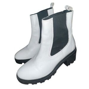 Enjoiya Dana White Leather Chunky Combat Style Boots Sz 40 9.5