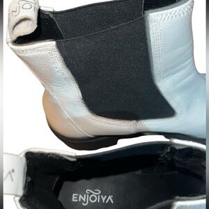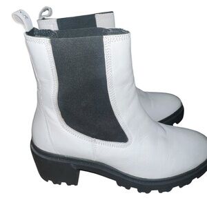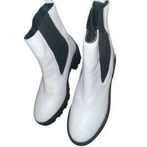 Step out in style with these chic white and black boots. Perfect for any occasion, they offer both comfort and elegance. Excellent condition never worn