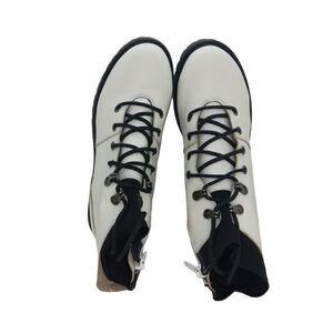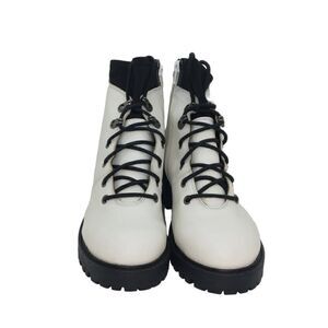 Enjoiya NEW Womens White Leather w/Black Combat Boots w/zipper on side - sz. 7