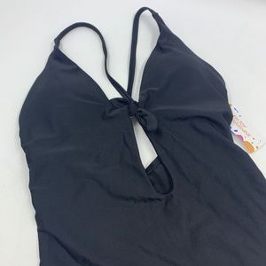 Enjoy The Sunshine Womens Medium Swimsuit Keyhole Bow Strappy Black NEW