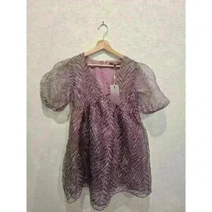 Enless Rose size Small. ZEBRA PRINT PUFF SLEEVE BABYDOLL DRESS IN PURPLE