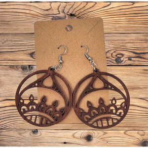Enlightenment Candle Wood Mandala Hook Earrings - Laser Cut - 1 Pair