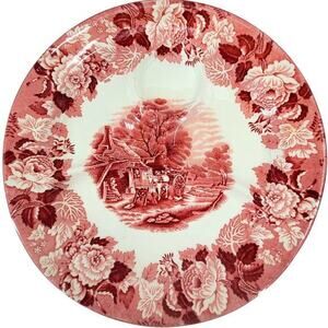 Enoch Wood's Ware Pink/Red English Scenery 4 Part Divided Grill Plate 10.75 1-2