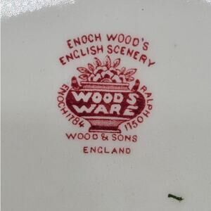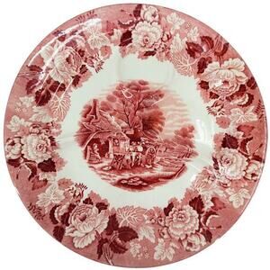 Enoch Wood's Ware Pink/Red English Scenery 4 Part Divided Grill Plate 10.75