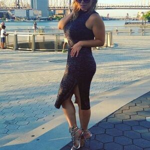Enough about me Sleeveless mock neck fitted midi dress medium
