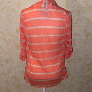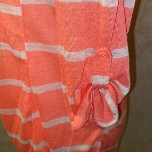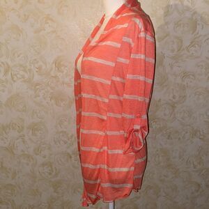 Cute coral and tan striped lightweight cardigan from Enough About Me.