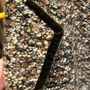 Elevate your wardrobe with the Enrico Ferezi Italian Boucle Blazer in size 10. This sophisticated piece blends classic elegance with a modern touch, featuring a multicolored boucle fabric that combines rich browns, blacks, and subtle hints of color for a textured, refined look.
