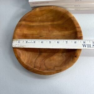 The Enrico Round Wood Plate is a beautifully hand-carved piece with a smooth finish, measuring 8.75 inches in diameter. Made from wood with a light brown color and wood grain pattern, this decorative platter features a stackable design and is perfect for adding a touch of mid-century modern style to your home decor. Handmade with care, this unique piece is a perfect addition to any kitchen or dining area, adding a touch of charm and functionality to your space.
