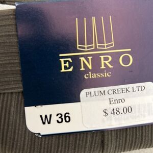 Enro Classic Olive Green Corduroy Flat Front Pants new With Tags 36/38