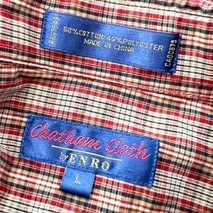 Enro Dress Shirt Men Large Red Plaid Chatham Cloth Long Sleeve Button Down