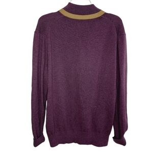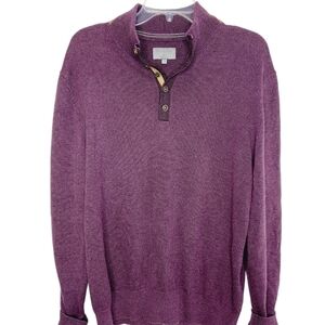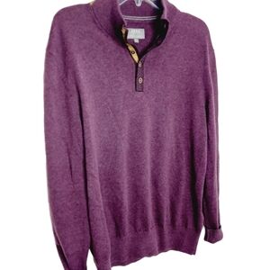 Enro Henley Sweater Cotton Cashmere blend Large Plum Faux Leather Trim Buttons