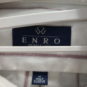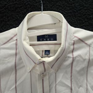 This multicolor ENRO men's button up shirt, size 16, blends cotton and polyester for comfort and style. With a striped pattern and short sleeves, it's perfect for summer.