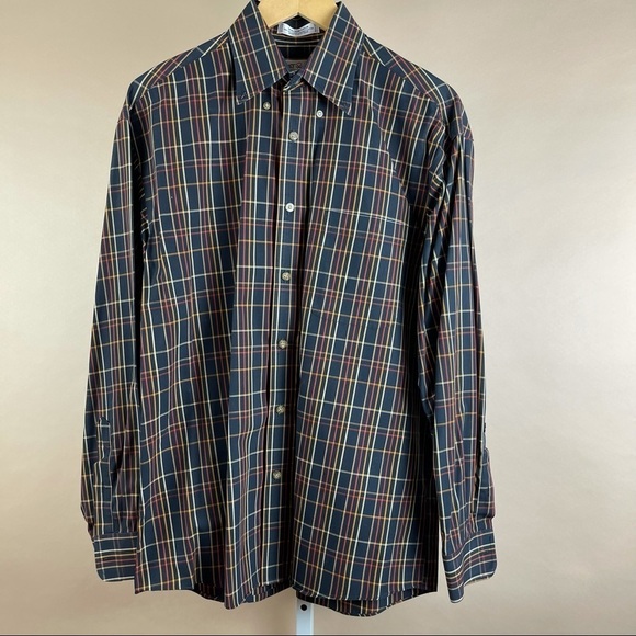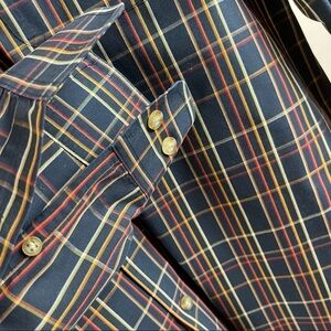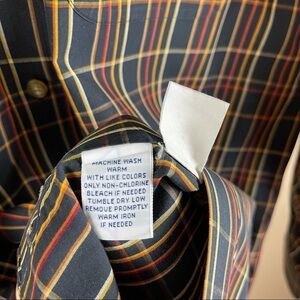 100% combed cotton. Non iron poplin dress shirt. Perfect colors for fall! Has some light marks shown in close up photos but not noticeable when worn in regular lighting.