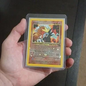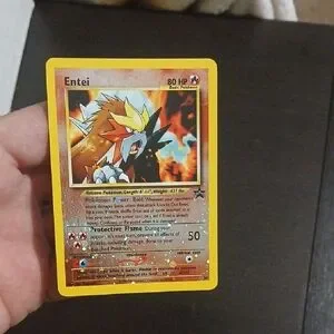 Black Star Promo reverse foil Entei, card is in lightly Played condition. Holographic and rare, card is set in a hard plastic sleeve.