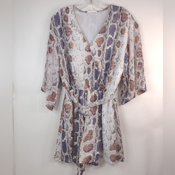 Entró women's Romper size (S). 3/4 sleeve , snake print, lined, elastic waist ,