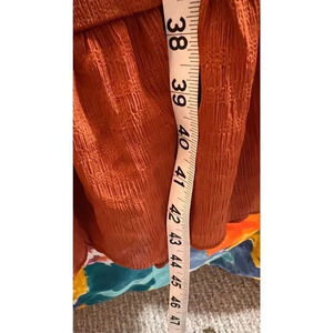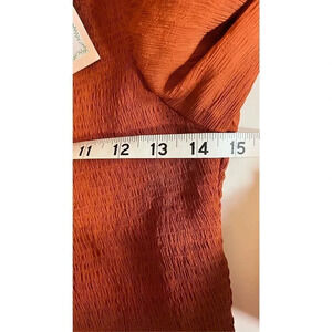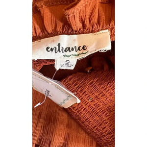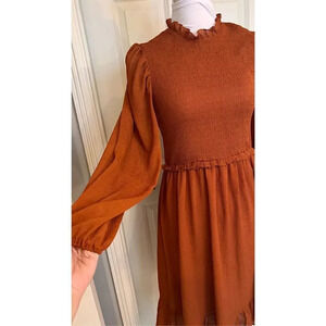 Entrance Womens Small Cinnamon Orange Fit Flare Maxi Ruffle Dress Balloon Sleeve