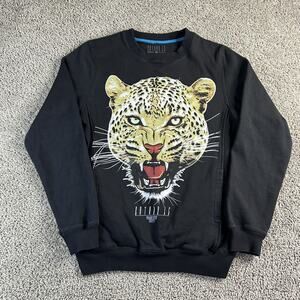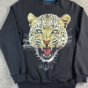 Entree LS Sweatshirt Mens Small Black Leopard Face Graphic Crewneck Streetwear