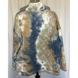 Entro 100% Cotton Quilted Shacket Jacket Coat 1/4 Zip Blue Tie Dye Size 1x