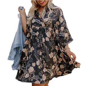Entro 1X Never Looked Over Tunic Dress In Black Curves Abstract Floral
