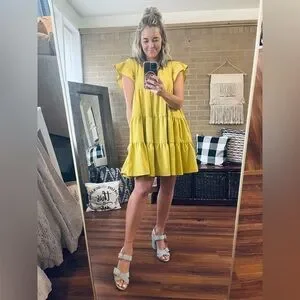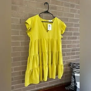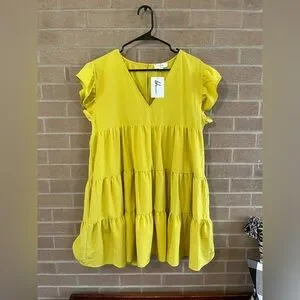 Brighten your wardrobe with this vibrant yellow ruffled V-neck dress. Perfect for any occasion, this top offers a stylish and comfortable fit.