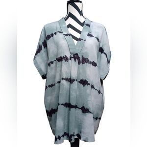 Entro Abstract Print V-Neck Rolled Cuff Sleeve Sz 1X Blouse.