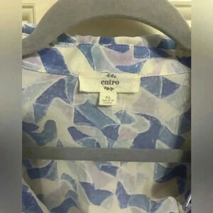 Elevate your wardrobe with this stunning Entro Anthro Geometric Balloon Sleeve Top. The oversized blouse is perfect for any occasion and features short balloon sleeves that add a touch of whimsy to your outfit. The multicolor geometric pattern is eye-catching and unique, making it a must-have for any fashion-forward woman. It is a great addition to any wardrobe and can be paired with jeans or a skirt. The top is perfect for its features, including an oversized fit, making it comfortable and stylish. Add this top to your collection and make a statement wherever you go. It is available in size XL and is pre-owned, but in excellent condition.