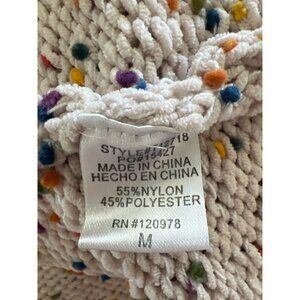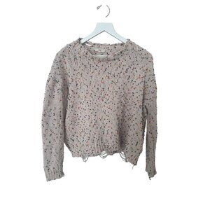 This Entro Anthropologie sweater embodies a stylishly relaxed aesthetic with its distressed design and speckled multi-color pattern. Crafted from a nylon-polyester blend, it offers a cozy fit for cooler days. The cream base provides a versatile backdrop, making it easy to pair with various outfits. Elevate your wardrobe with this unique piece.