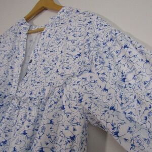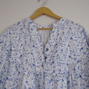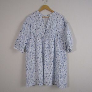 Entro Babydoll Dress Large White Blue Floral Oversized Whimsical Coastal Boho