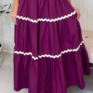 Say hello to effortless charm with the Bailey Ric Rac Maxi Dress! This delightful dress features playful ric rac trim and a flowing skirt that twirls with every step. Perfect for those sunny days, you can style it with your favorite sandals for a laid-back, breezy look, or dress it up with a pair of wedges and a chunky belt for a more boho chic look! Ideal for picnics, casual brunches, or a fun day exploring the city, this maxi dress is your go-to for a cheerful and comfy wardrobe staple!