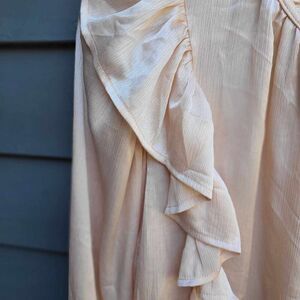 Entro Beige Ruffle Blouse Gathered Sleeves size Large