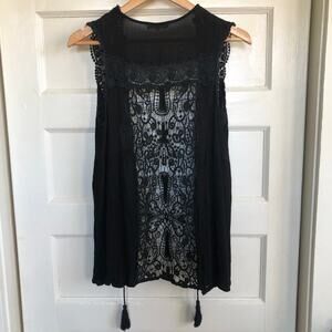 Entro Black Crochet Sleeveless Cardigan Small Tassels Boho Festival Whimsygoth