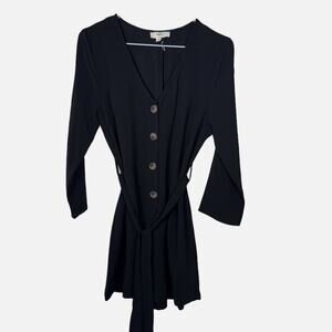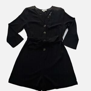 Entro Black Romper Women’s S Button Front Tie Waist 3/4 Sleeve One Piece Casual
