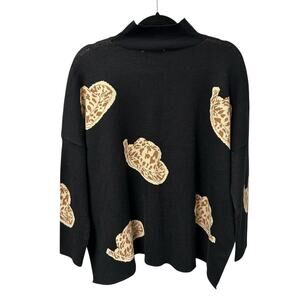 Entro Black Tan Cowboy Hat Print Mock Neck Pullover Sweater Womens Size Small
