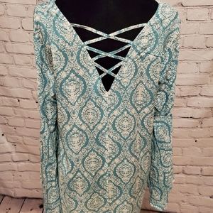 100% Rayon Entro Blouse with flutter sleeves. Size Large. Light green and cream. *NEW * Without tags and never worn. Purchased from an online boutique.