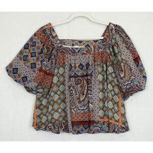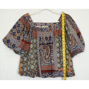 Entro Blouse Women Medium Boho Paisley Mixed Print Square Neck Flutter Bubble Sleeve Top