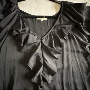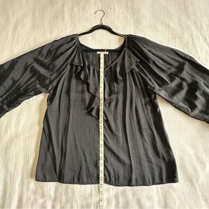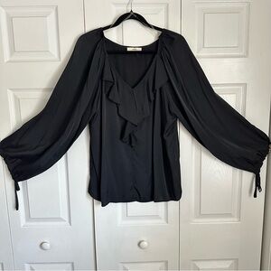 Entro Blouse Womens Large Black Ruffle Balloon Sleeve Boho Flowy Soft Bamboo Cotton Blend V Veck Top Whimsigoth
