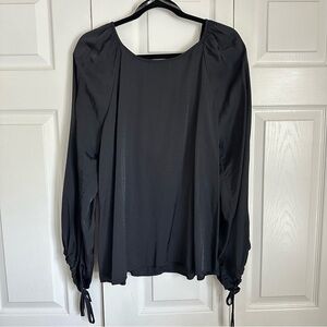 Entro Blouse Womens L Black Ruffle Balloon Sleeve Boho Top Bamboo Whimsigoth