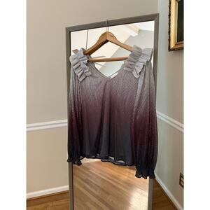 Entro Blouse Women's Large Ombre Purple/Gray Glitter Sparkle Goth Glam Party