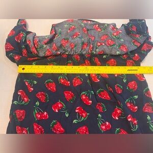 Entro Blue and Red Ruffled Off the Shoulder Blouse with Fruit Print - M