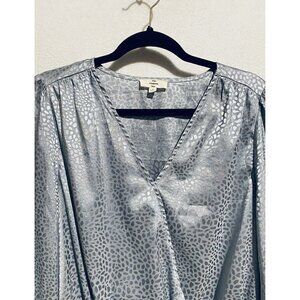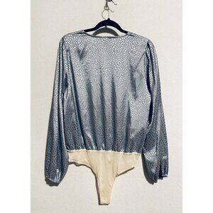 Entro Bodysuit Womens Large Animal Print Long Sleeve Faux Wrap Silver Gray Boho