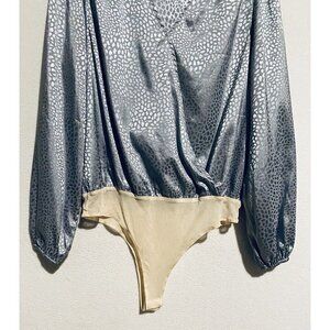 Entro Bodysuit Womens Large Animal Print Long Sleeve Faux Wrap Silver Gray Boho--Size: small
