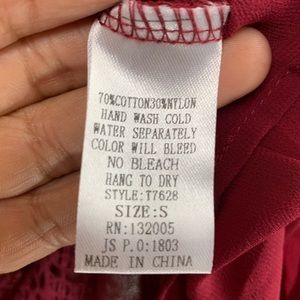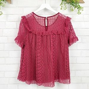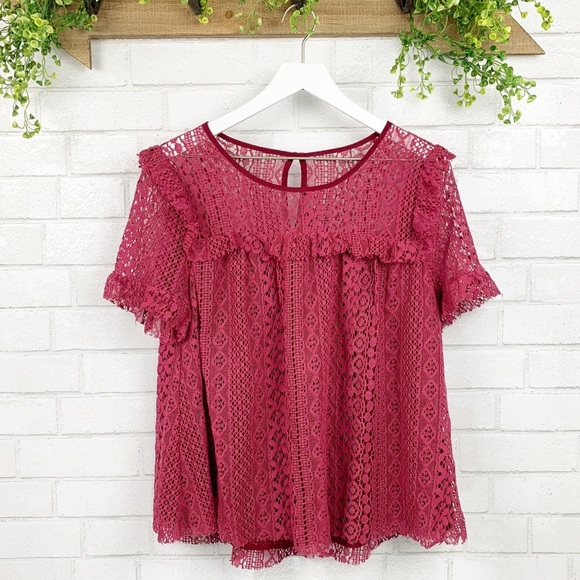 Super cute boho chic dark mauve (or light burgundy lol) ruffle lace swing top from Entro! Perfect piece for spring and summer. Excellent condition with no stains or holes. Fully lined and buttons at the back of the neck. I’d love to accept your reasonable offer:)