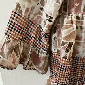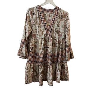 Entro Boho Tiered Mini Dress Geometric Lightweight Tunic Cottage Flowy small NWT