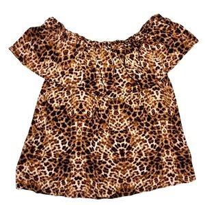 Entro Boutique Leopard Catimal Animal Print Off The Shoulder Top Blouse Size M