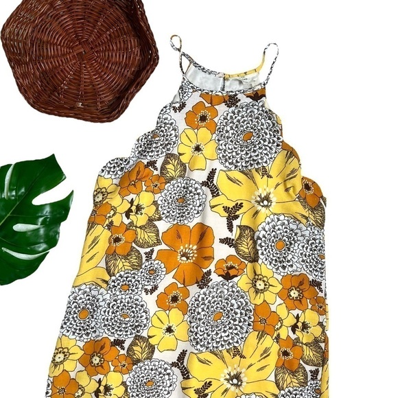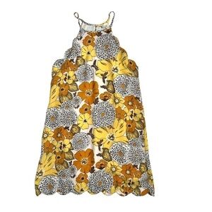 TITLE: Entro Boutique Marigold Retro 60s Floral Inspired Sleeveless Scallop Shift Dress Size Small